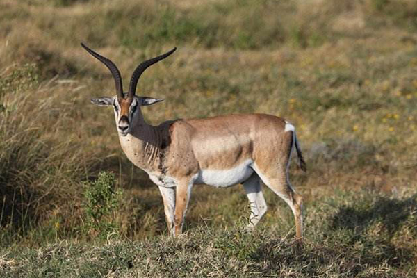 葛氏瞪羚的背部是黄棕色,而腹部完全浮现白色,和汤氏瞪羚的形状格外的相像,不过修长的羊角尖端向外委曲,并且臀部的白色外相是蔓延到了尾巴上方,葛氏瞪羚的数目越发荒凉,并且体型是鹿瞪羚中较大的一种。