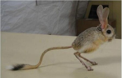 原产于非洲西南部的跳鼠,是一种蹲着和普通老鼠差不多,站着却拥有大长腿的老鼠。跳鼠天生就有一副让鼠羡慕的身高,长长的后脚和强壮的后退,让他们非常善于跳跃。它们有着长长的尾巴和大大的耳朵,皮毛十分的柔软。