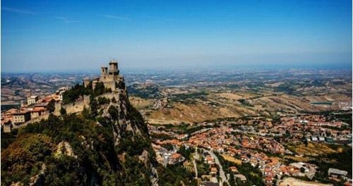 圣马力诺共和国于1599年取得独立,整个国家都位于意大利境内,面积不超过24平方英里(约62平方千米),人口30000有余。