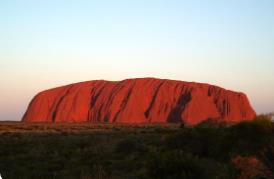 就在这样无比广袤的原始荒原上,凭空躺着一座巨石,像一个趴在那儿的庞大固埃似的咖啡色的大象,底座周长约9公里,上面寸草不长。这巨石原始的咖啡色就是澳洲著名的沙砾石的颜色,也像澳洲土著的肤色。