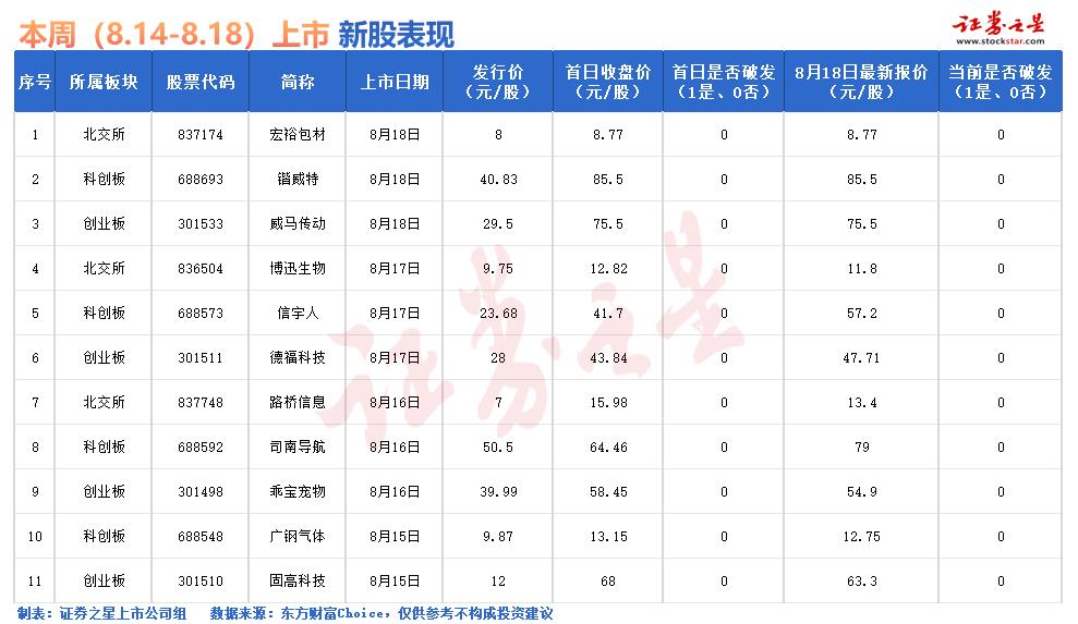 8月18日,创业板新股威马农机上市,发行价格29.5元/股,发行市盈率为44.05倍。