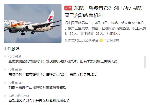 一架搭载123人乘客、9名机组人员的东航客机在广西梧州市上空失联并坠毁,伤亡情况尚在调查中...