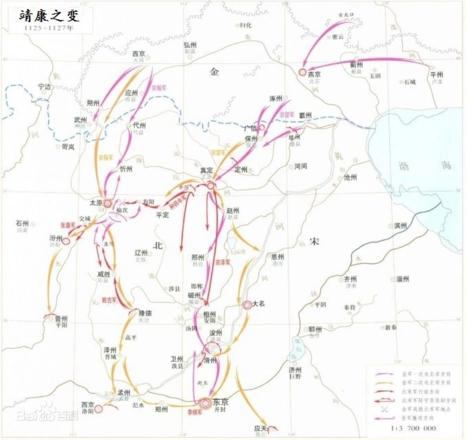 靖康之变行军路线示意图