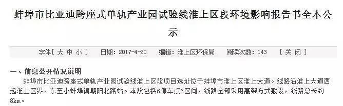 蚌埠云轨一直是大家比较关注的,就在4月20日淮上区公布了蚌埠市比亚迪跨座式单轨产业园试验线淮上区段环境影响报告,同时也公布了淮上区的全线拟设置6处停车点。