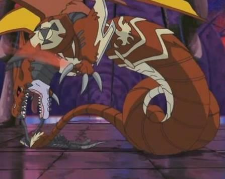 龙型数码兽中最凶恶、最邪恶的数码兽。性格与其他三龙相比,凶恶程度有过之而无不及。稀有到是否现存还不能判断,其存在本身就是“数码危机”,但其能量被未知的“力量”所封印着。然而,据说当这股力量觉醒之时,会对数码世界带来巨大的灾害。拥有时之数码合金制的身躯。