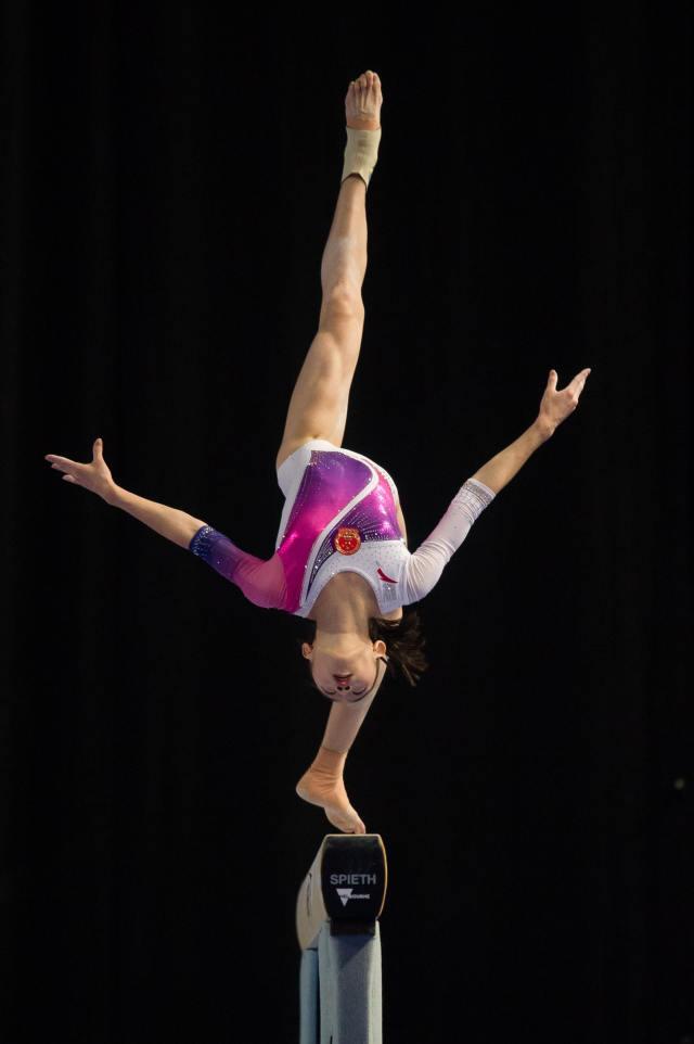 ↑ 中国选手刘婷婷在平衡木比赛中。