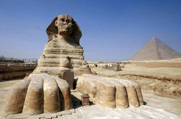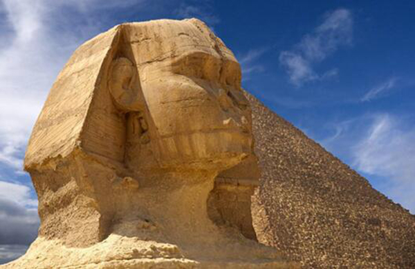 狮身人面非常像是古代希腊神话中的神,对此西方人可谓是对狮身人非常敬畏。狮身人面像头顶带着皇冠,在它脖子有像蛇一样纹案,经历上千年风吹雨打,现在已经是非常破败不堪,特别是鼻子,基本上是看不出来。即使狮身人面像经过上千年风吹雨打,但它高大威严形象,现今人们还是对它非常尊敬,不敢有一丝侵犯。