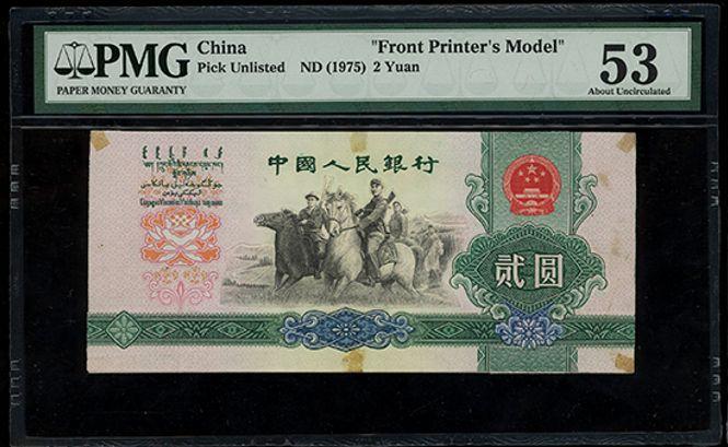 上面这种拍卖成交价达到132万的2元纸币,就是设计稿之一。在这版设计稿中,设计了不少军民保卫边疆题材的纸币。75版2元的正面图案,就是天山军民骑马保卫边疆。
