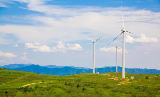 天是那样蓝,洁白的云挂上去一般,又感觉可以随手摘下来。呼吸着最清新的空气,沐浴着最灿烂的阳光,在这一片翠绿的色彩中沉醉。一路上风车林立,桨叶劲旋。有时候看着那风车随风舞动会出神,这不就是我们要寻找的世外桃源吗?