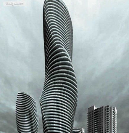 2012年6月,位于加拿大密西沙加市的二栋高层住房“梦露大厦”, 被CTBUH评比为美洲地域高层修筑最高奖。也是闻名的歪曲式摩天大楼之一。梦露大厦从底部到顶部总合转动209度,极为亲近瑞典马我默的HSB转动核心。有六层地下停车场。