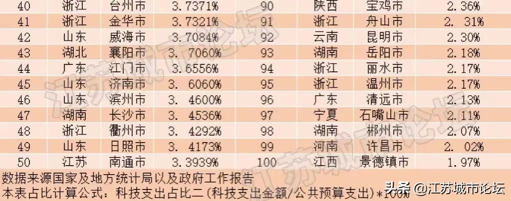 苏中地区有三个,刚好是扬州、泰州、南通,其中南通科技支出占比排在了第50名,扬州和泰州分别排在第66名和第61名。