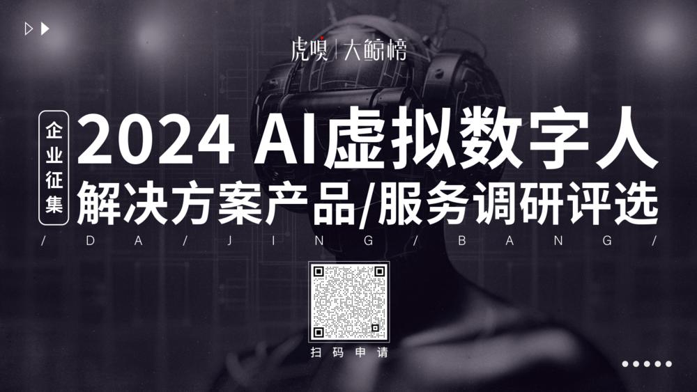 基于此,虎嗅智库正式推出大鲸榜 · 2024AI 虚拟数字人供应商调研评选,向各位科技企业发出邀请,与我们共同挖掘优质供应商、探索 AI 虚拟数字人技术前沿。