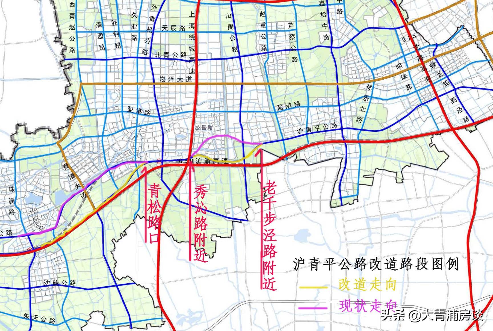 规划显示青浦城区段沪青平公路老千步泾路至绕城高速及青松路以西将向南改道。
