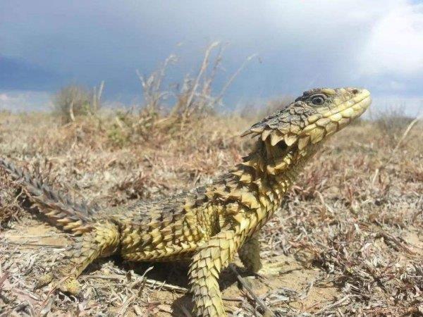 巨型环尾蜥,生活在干燥多岩的南非,国内有土豪引入当作宠物饲养,体长在25~35厘米左右,巨型环尾蜥全身充满荆棘的形态非常符合西方人对于龙的想象,说不定它插上个翅膀就能喷火了,因为像极了《权力的游戏》中的龙。