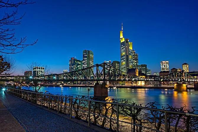 法兰克福约有 763,380 名居民居住,在十大城市排名中位列第五。作为一个银行业繁荣的大都市,这座位于美因河畔的城市以其金融区而闻名。除欧洲央行外,比尔芬格、DB Regio铁路运输公司和德国商业银行等其他跨国公司总部也设在这里。GDP约668亿欧元。法兰克福还是国际空中交通枢纽,法兰克福机场是德国最大的机场,每天约有上千多个航班运行,是欧洲第四大机场。