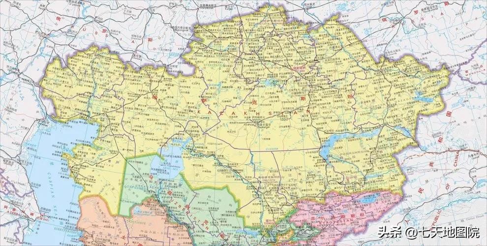 哈萨克斯坦北部与俄罗斯接壤,南部与乌兹别克斯坦、吉尔吉斯斯坦、塔吉克斯坦和中国接壤,西部濒临里海,与阿塞拜疆、土库曼斯坦和伊朗隔海相望。