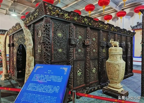 百床馆和根雕馆内收藏了上百件古床榻和根雕艺术品,据说里面的“床王”是末代皇帝溥仪曾睡过的云龙纹嵌玉石红木床,雕刻精美,极尽奢华。