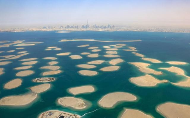 大海中星星点点的岛屿,那不是大自然赐给迪拜人的天然岛屿,而是迪拜人为吸引世人目光,投资800亿元,在一望无际的大海上人工堆砌起的岛屿,但最终还是竹篮打水一场空。