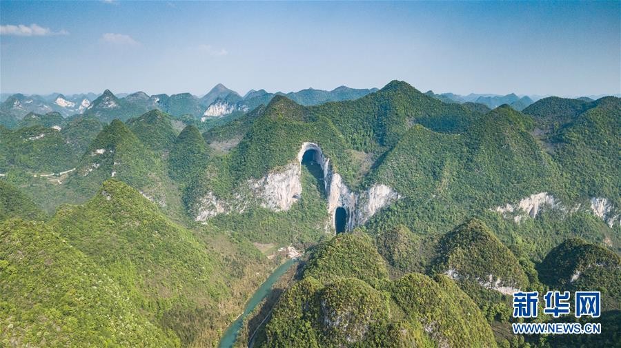 格凸河景区风貌(4月19日无人机拍摄)。谷雨将至,贵州省安顺市紫云苗族布依族自治县格凸河景区山青水秀,风光秀美。新华社记者陶亮摄来源:新华网