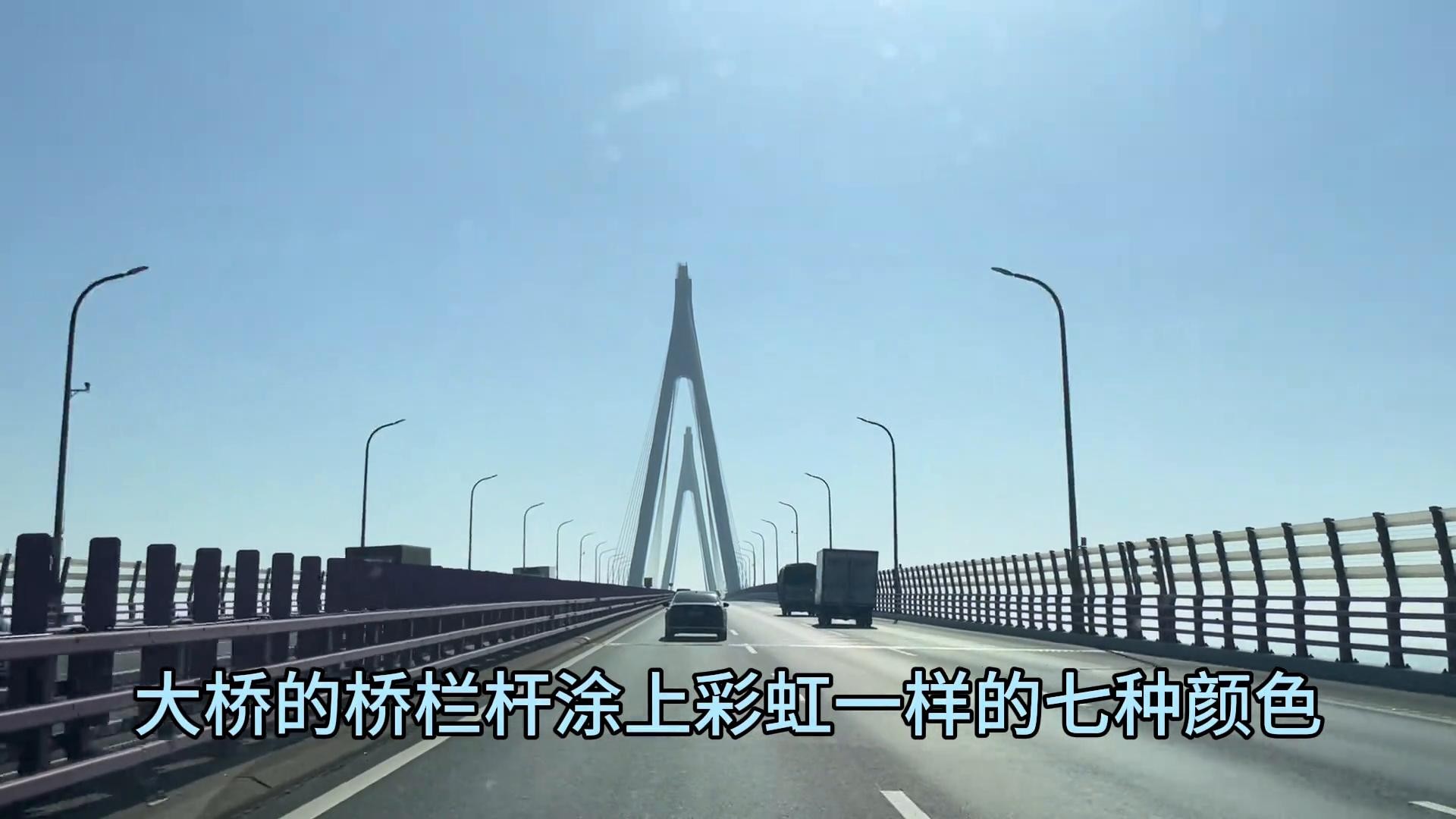 大桥的桥栏杆涂上彩虹一样的七种颜色:赤、橙、黄、绿、青、蓝、紫。每种颜色覆盖5公里,七种色彩就像雨后的彩虹飘洒在护栏上。不仅是一道妙趣横生的奇妙景观,更是镶嵌在桥身上的一道靓丽风景线。
