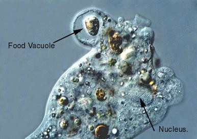 如果将阿米巴虫切成两段,那么在切口处的表面上会立即形成新的细胞膜。包含细胞核的那一部分可以存活,而另一部分因为不能消化食物而最终死亡。