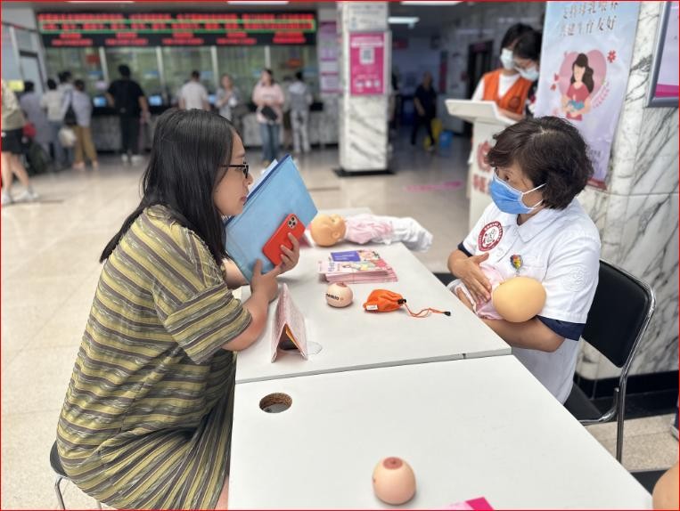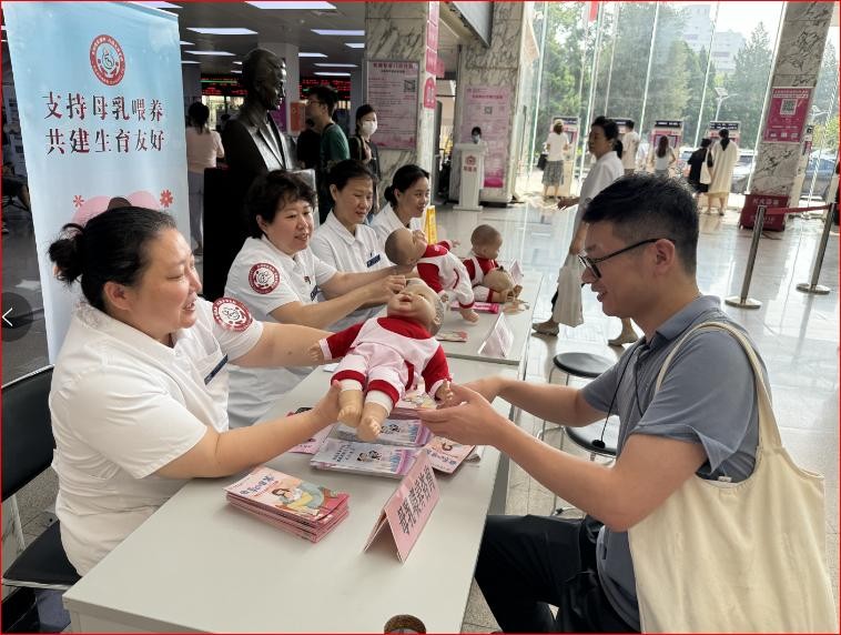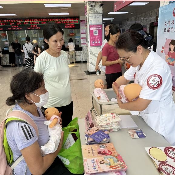 8月2日-8月6日,母乳喂养咨询师及产科护理专家在东院区门诊大厅开展母乳喂养咨询活动,为300余名孕产妇及其家属解答母乳喂养中的问题,并发放母乳喂养健康资料。