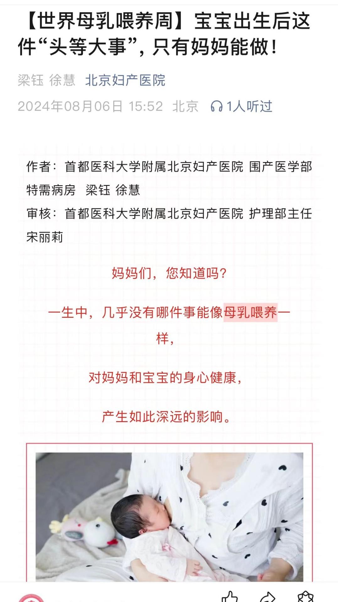 【世界母乳喂养周系列活动】母乳是新生儿最好的礼物