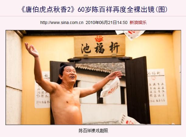 并且还和周星驰在《唐伯虎点秋香》中,敢于牺牲色相,不惜全裸出镜,只为一个崇高的目的,搞笑观众,为艺术献身。