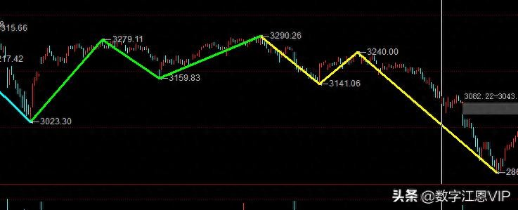 第一:3023-3290是绿色线段的ABC,在绿色ABC走完之后,本人就可以神奇的预测3023-3240是一个失败的五浪,结局是什么,必须必。