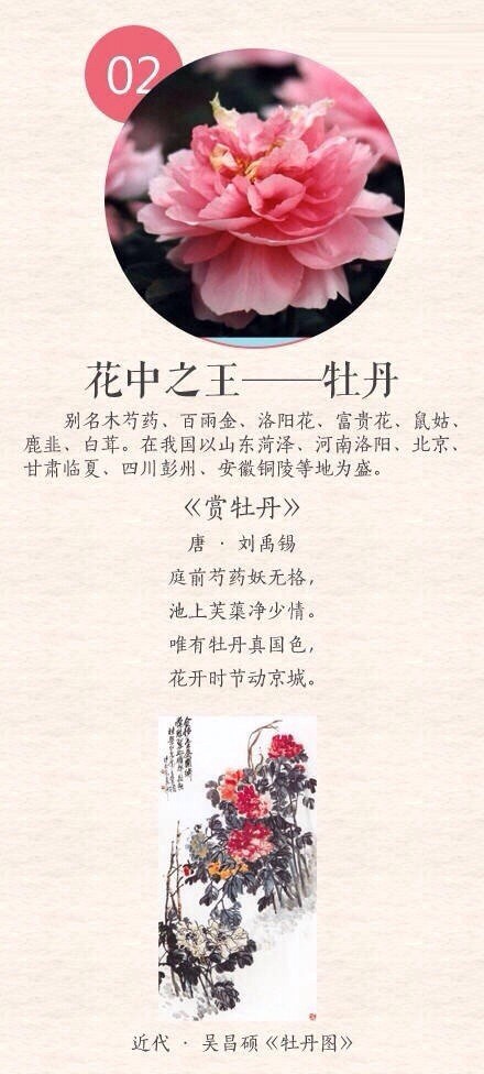 发现一组十大名花的配图,是有花的图片,介绍,配了诗文,还配了画作的,我觉得很经典,值得收藏,分享一下。