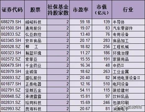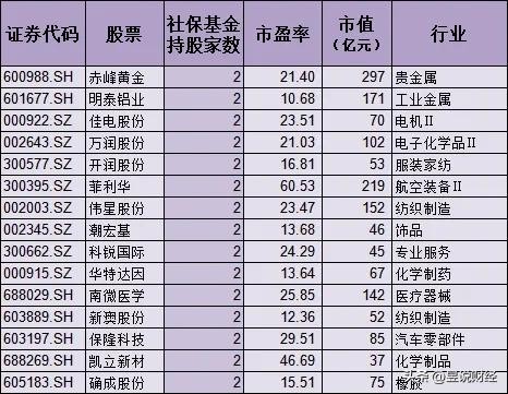 目前,刚好100只股票被社保基金抱团重仓,每只股票都有2只及以上的社保基金抱团,均被重仓买进成为前十大股东。其中,有15只股票是国内排名第一的细分行业龙头。具体如下: