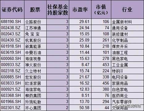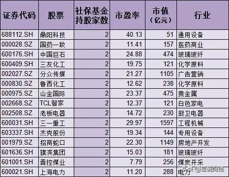 社保基金抱团的股票,包含:鼎阳科技、中国巨石(玻纤产量全球第一)、分众传媒(电梯广告龙头)、鲁西化工(煤化工龙头)等。