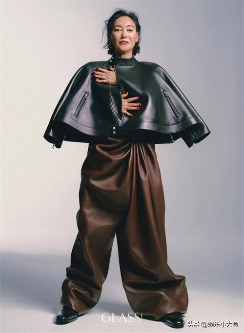 惠英红登上GLASS三月刊封面。她身着黑色皮衣,酷飒十足。黑色的皮衣在灯光下闪耀着冷酷的光芒,显得霸气而不失风度。无论是她的眼神还是举止,都散发着一种无法言喻的强大气场。每一次举手投足,都展现出影后的非凡风范。