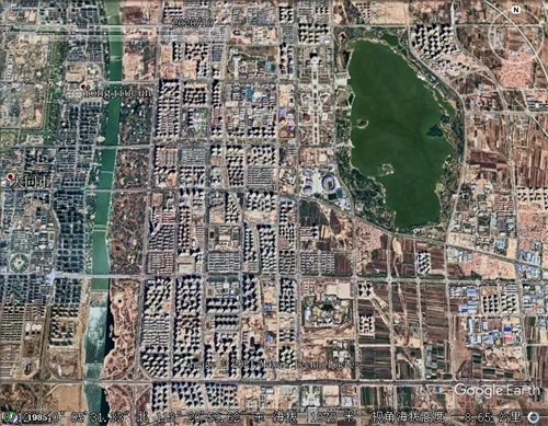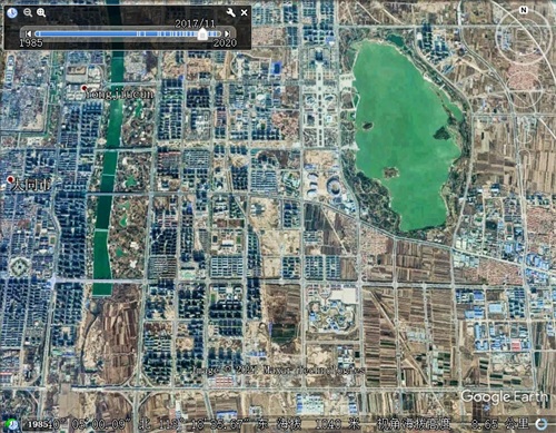 2012年的御东新区,御河和生态园的修复和建设已经有了巨大变化,大同文瀛湖在经历了几十年的干涸,又重新迎来了新的生命,与御河生态园共同构成“大同绿肺”。伴随着生态环境的改善,御东新区建设也取得了巨大进步,卫星图可以看出御东行政中心,文化中心稳步推进,大片高层大楼拔地而起,但随着12年耿市长的调离,大同城市建设急刹车,似乎按下了暂停键,各项工程全部停工,包括大同地标建筑五大场馆。同时大同市民也对自己的城市发展感到了前所未有迷茫!