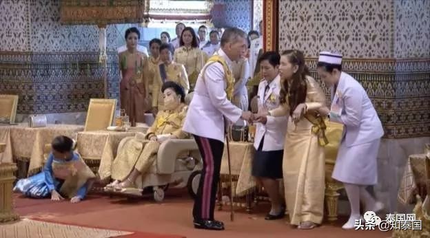 5日上午王室册封仪式,泰国颂莎瓦丽亲王(十世王玛哈•哇集拉隆功国王第一任王妃、帕差拉吉帝雅帕公主母妃)出席,与十世王亲切交谈,王后参拜。