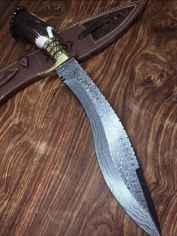 产地:古印度特点:大马士革刀以其独特的乌兹钢锻造工艺而闻名,刀身布满各种花纹,如行云流水,美妙异常。这种花纹是在铸造中形成的,使得大马士革刀不仅美观,还具有极高的硬度和韧性。历史地位:大马士革刀被誉为“名刃之首”,是世界上最昂贵、最坚韧、最著名的刀具之一,也是刀具收藏界的极品。