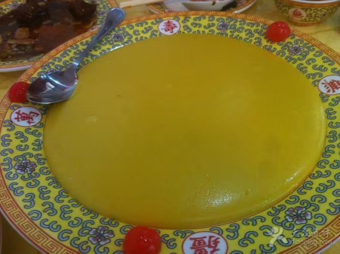 "三不沾”是北京同和居宾馆独有的一道菜,据说这道菜原来是清宫御膳室的名菜。它有150多年的历史,是用鸡蛋核、淀粉和糖炒的。它是金色的,味道很好。它不附菜、不附牙、不附筷,只称“三不贴”,又称“桂花香甜蛋”。