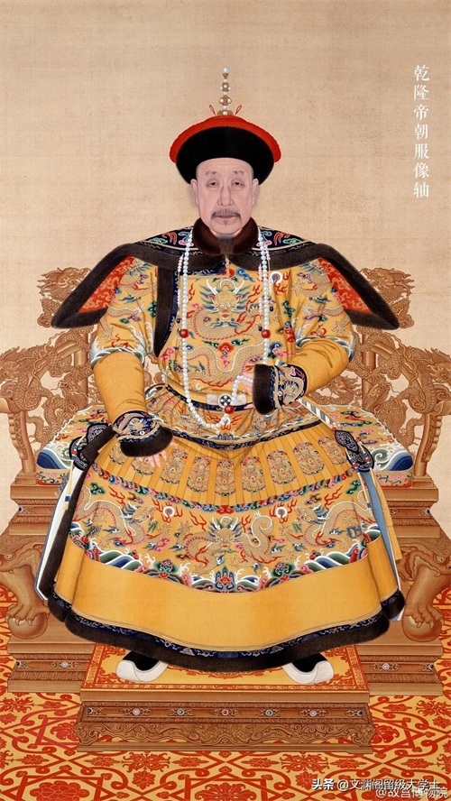 第十位 清高宗乾隆皇帝(1735年~1795年)在位。乾隆皇帝是中国历史上实际掌权最长的皇帝。他在位期间,将雍正帝的改革完整有效的贯彻落实,他在康熙、雍正两朝文治武功的基础上,进一步完成了多民族国家的统一,社会经济文化有了进一步发展。乾隆重视社会的稳定,关心百姓,五次普免天下钱粮,三免八省漕粮,减轻了农民的负担,起到了保护农业生产的作用,使得清朝国库日渐充实。乾隆时期武功繁盛,在平定边疆地区叛乱方面做出了巨大成绩,并且完善了对西藏的统治,再次将新疆纳入中国版图,清朝的版图由此达到最大化,近代中国的版图也由此正式奠定。乾隆帝在位期间,实行“因俗而治”的民族政策。汉学得到了很大的发展,开博学鸿词科,修《四库全书》。总之,在乾隆皇帝在位期间,清朝的国力达到了鼎盛,史称“康雍乾盛世”。