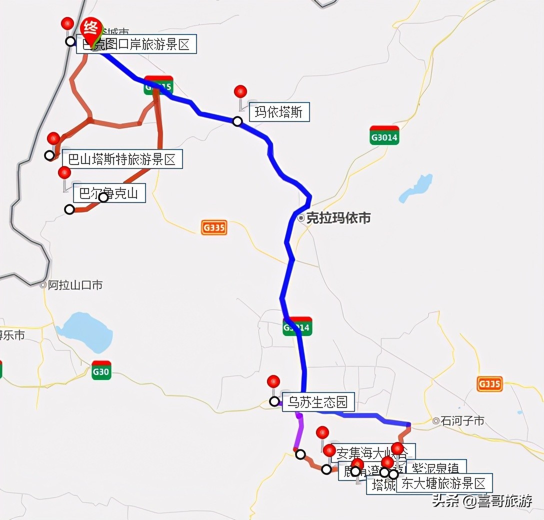 2、塔城十大景点自驾游行程路线:塔城-乌苏生态园-安集海大峡谷-鹿角湾旅游风景区-沙湾温泉旅游区-东大塘风景区-紫泥泉镇-玛依塔斯-巴尔鲁克旅游风景区-巴山塔斯特旅游风景区-巴克图口岸-塔城。