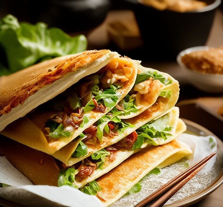 是南方地区的主食之一,也是这一天的传统美食。煎饼寓意着步步高升和事业有成,人们相信,品尝了煎饼,新的一年事业将更加顺利,生活蒸蒸日上。