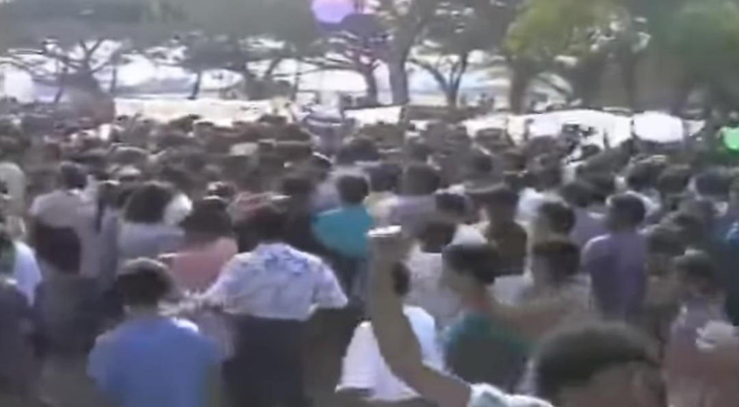 当时现场的照片,人群正在游行抗议