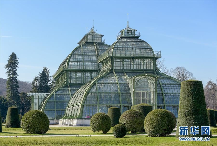 这是3月21日拍摄的奥地利维也纳美泉宫花园内的热带植物温室。 新华社记者 郭晨 摄