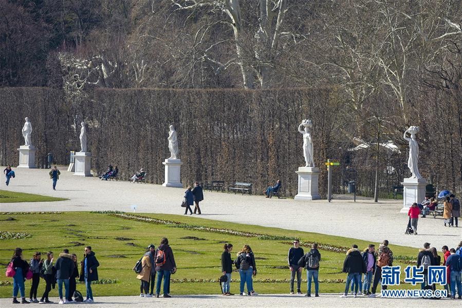 3月21日,游客在奥地利维也纳美泉宫花园内休息。 新华社记者 郭晨 摄