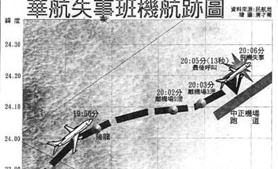 坠机地址距5月中国台湾华航客机出事的地址仅相距约惟有10里。有中国台湾媒介报讲,澎湖西南近百傻暮?樟煊蚓常爆发相似罗盘无端挨转、海面涌现白光等超天然局面,澎湖海疆往日35年来爆发10宗空难,16年来已坠掉5架飞机,被称为“澎湖百慕达”。