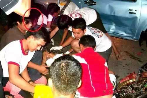 人们正在救帮爆发车祸的人,留神考察会瞅到,人群中有一个浑身是血的人正在注沉地上的尸身,大概他不过在瞅本人。