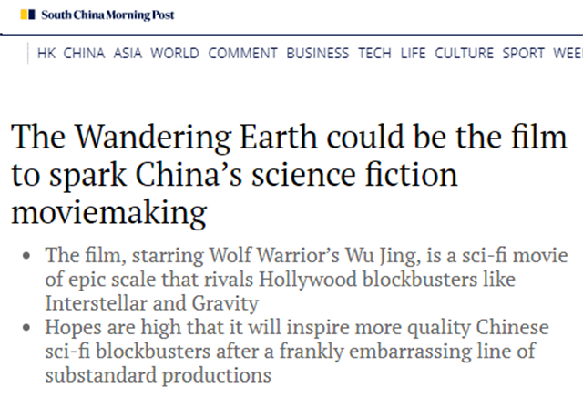 《南华早报》的考语为这部电影定了调:史诗级科幻影戏!