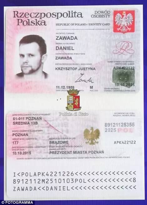 (Lukasz Herba的假护照,上头显现的是一个名字)