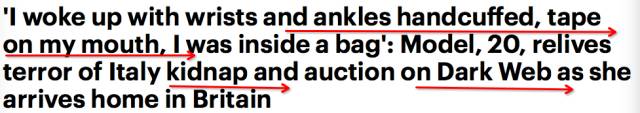 之后Chloe感触本人想被货色普遍搬来搬去,还有一阵振动,之后便不牢记了,过后她回顾讲:醒来时本人被闷在一个袋子里,手足都被铐着,嘴巴被胶戴沾着,袋子上仅有一个小孔供呼吸,惧怕感难以刻画……
