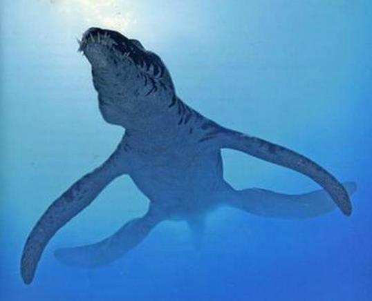 具有锋利眼光和尖长牙齿的上龙是匍匐径物克服海洋的卓越代表,在海怪排行榜上排名第五。上龙是侏罗纪海洋中的匍匐径物,它们靠肺呼吸,体长可达15米,体沉胜过10吨。上龙的大头颅胜过2米,一张扁宽的大嘴和满口的尖牙是它们的屠戮东西。大头颅反面是短粗的脖子和伟大的身材,这为上龙供给了强盛的咬协力和能源。
