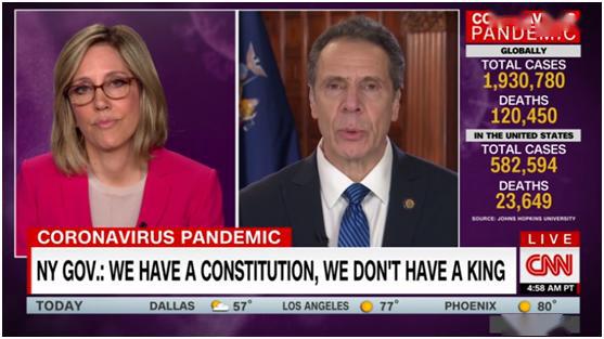 纽约州州官:我们有的是领袖 不是国王动作全美最早公布加入焦急状况的州之一,纽约州暂时统计确诊数冲破20万例。